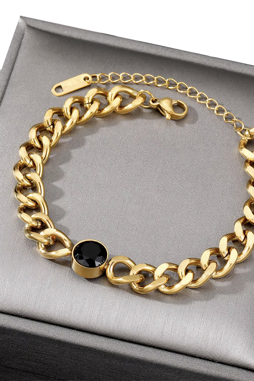 Μοντέρνο βραχιόλι με μαύρη πέτρα και ασφαλές κούμπωμα. Από ατσάλι επιχρυσωμένο με 18k. Υποαλλεργικό. Φοριέτε όλη την ημέρα.